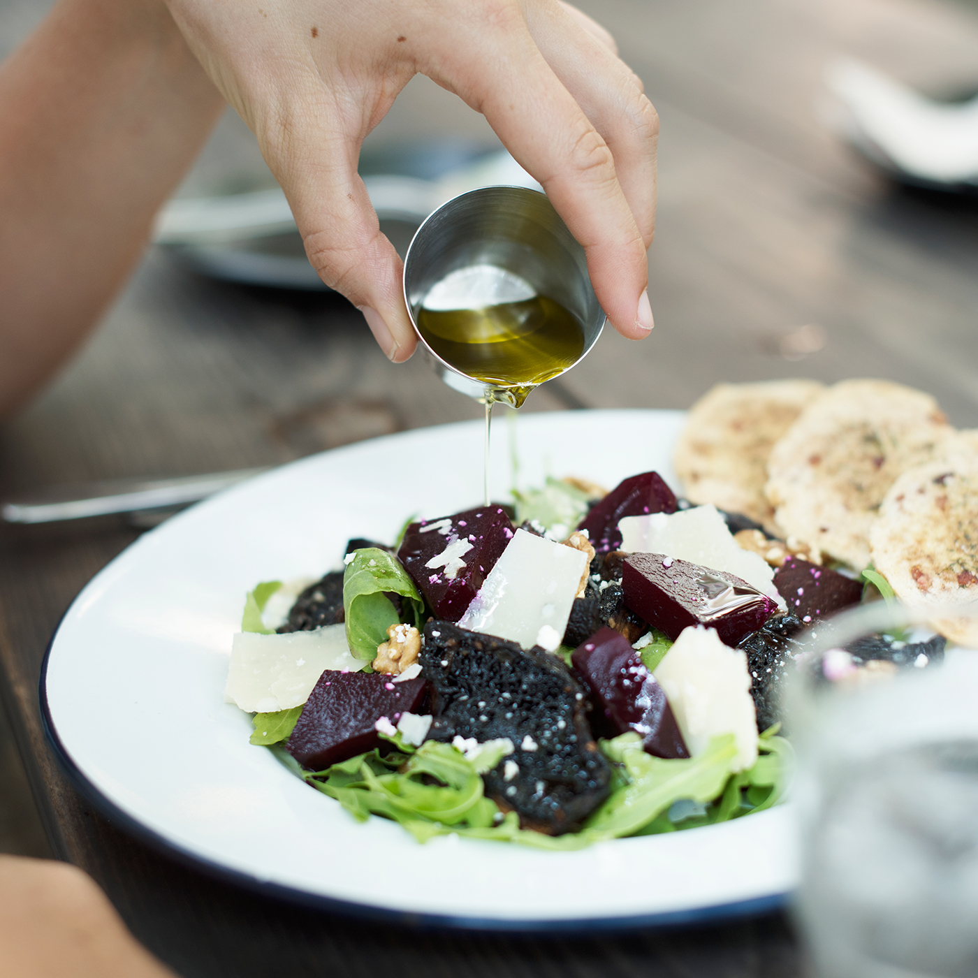 Order salad dressing on the side. Ordering a veggie and protein loaded salad is a great meal to have for lunch or dinner! What can make a healthy salad go bad is the unknown amount of salad dressing being mixed into the salad. Ordering the salad dressing on the side gives you the control of how much or how little dressing you need. A normal serving of salad dressing (be it oil or cream based) is around one-two tablespoons and about 75-110 calories. Also, don’t forget the additional toppings like cheese, croutons and in some restaurants, fried onion rings! Taking those extra toppings off will save even more unwanted calories!